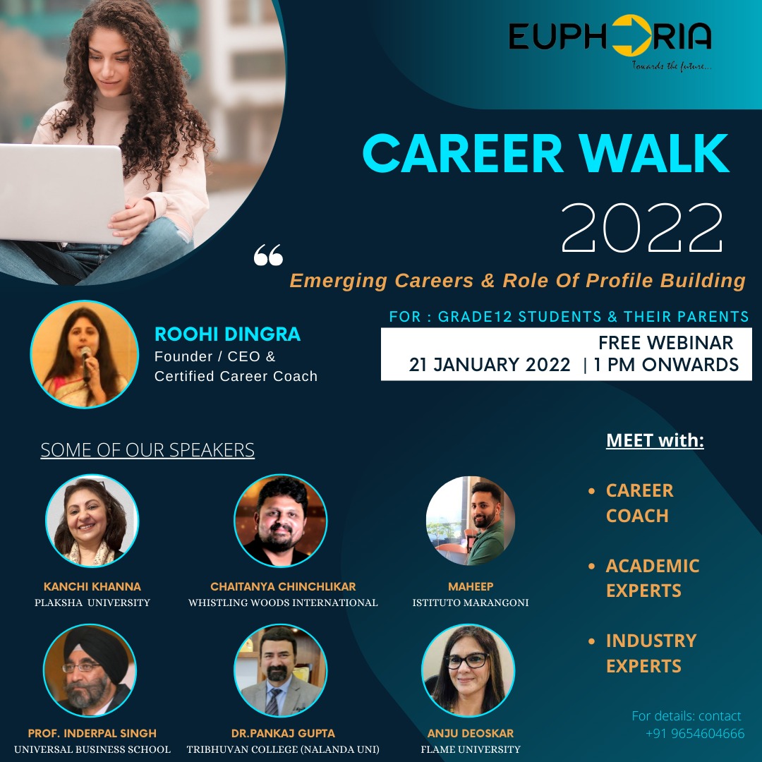 A Webinar on the topic of “EMERGING CAREERS & ROLE OF PROFILE BUILDING” was organized by Ms. Roohi Dingra Founder & CEO at Raising Brands, Euphoria Career Guidance. This session was conducted to provide insights on excellent profile building and emerging careers of the 21stcentury. The speakers spoke about profile building, social, business, and soft skills and how to acquire them. They also provided information about the courses and programs offered by the respective universities.