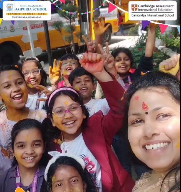 This Holi, let’s celebrate the colors of learning with The Cambridge International Wing of Seth Anandram Jaipuria School, Ghaziabad wishes you a joyous and vibrant Holi! We reaffirm our commitment to usher colors of happiness, knowledge, and new-age learning for our students. Let’s celebrate the spirit of learning, unity, and festivity together!