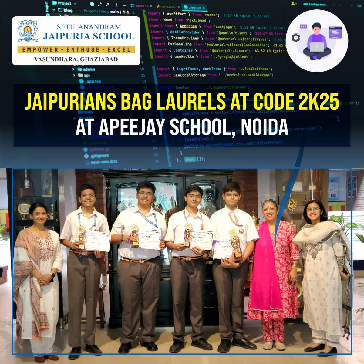 It’s a proud moment for Seth Anandram Jaipuria School, Ghaziabad! Our talented students showcased their creativity and tech skills at CODE 2K25, Apeejay School, Noida.