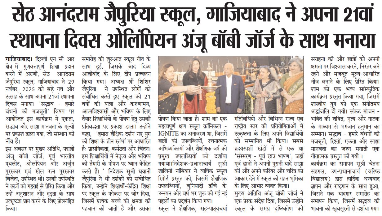 SAJS Vasundhara Ranked No. 1 in Ghaziabad by Dainik Jagran Rankings 2025