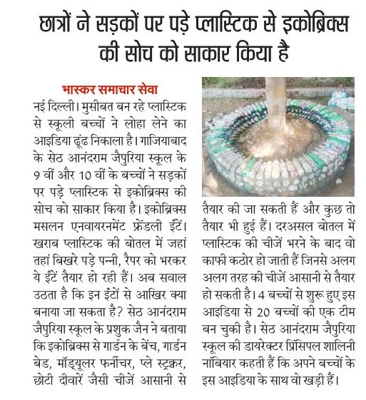 Our Students of Seth Anandram Jaipuria School, Vasundhara, Designing Eco-Bricks from Waste