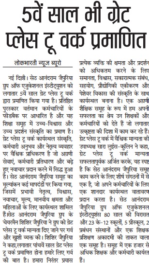 Link:- https://edu-news.net/education/seth-anandram-jaipuria-group-of-educational-institutions-certified-great-place-to-work-for-5th-year