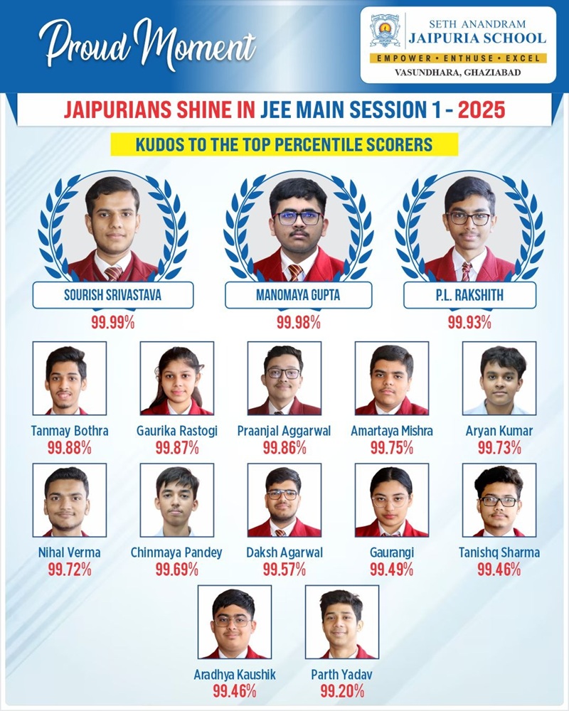 Jaipurian Star Sourish Srivastav Scores 99.99 Percentile in JEE Main 2025