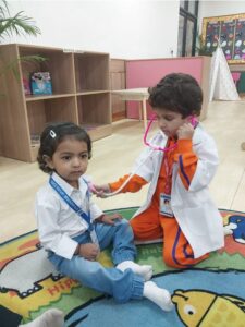 Creativity knows no bounds here! With recycled materials and an open-ended approach, children build, design, and problem-solve, letting their imaginations run free. - Role Play Area