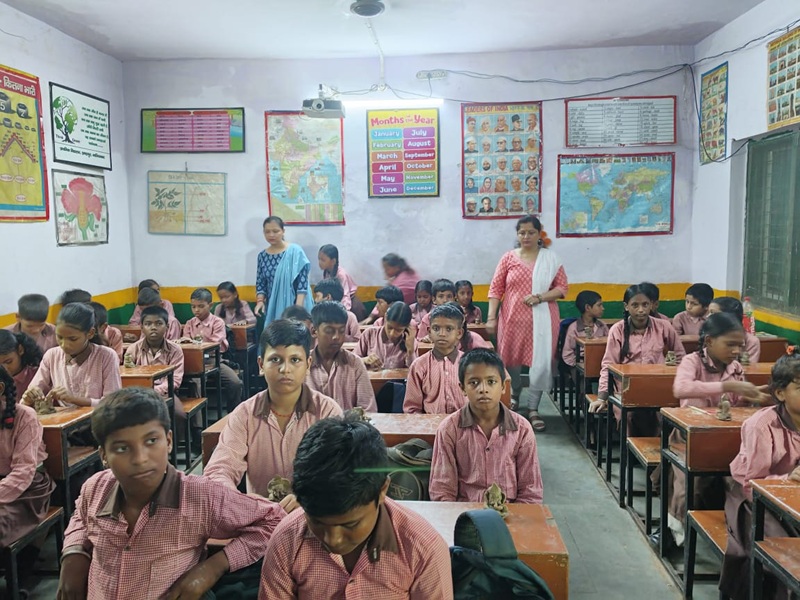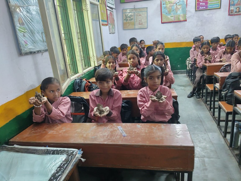The initiative aimed to spark imagination and encourage self-expression among young learners. Club members Ruhi, Mishti, and Nyra interacted warmly with the children, motivating them to translate their dreams and ideas into art.